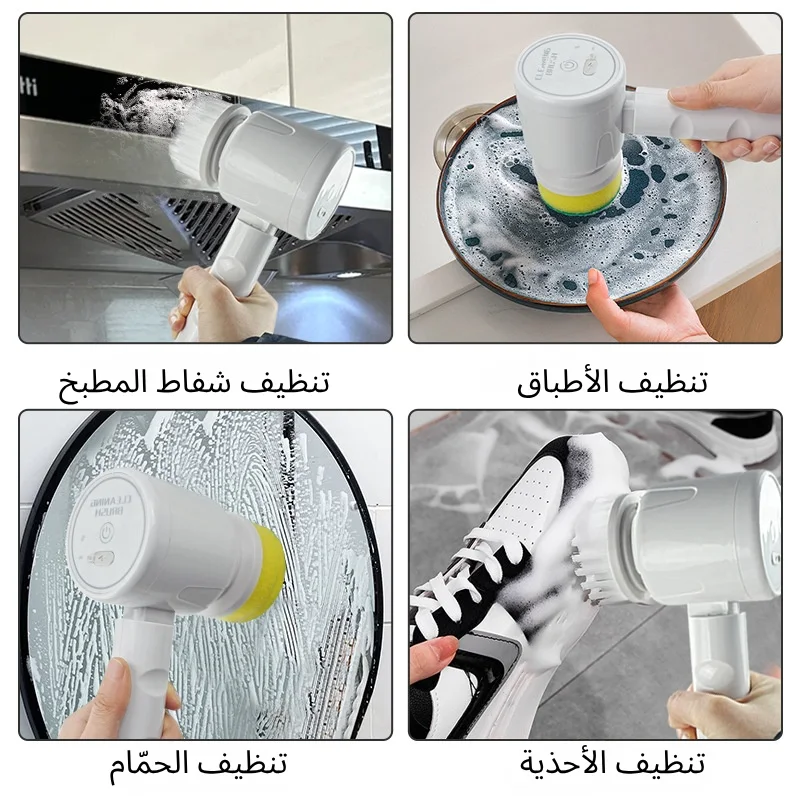 فرشاة تنظيف كهربائية قوية وعملية تساعدك تنظفي بسرعة ومن غير تعب. تجي معاها رؤوس متعددة تناسب المطبخ، الحمام، تنظيف الأحدية و الأسطح المختلفة بسهولة. تعطي نتيجة ممتازة في إزالة الوسخ والدهون، وخفيفة في اليد وسهلة الاستعمال مع شحن USB. خيار مثالي يخليك توفري وقتك ومجهودك في التنظيف اليومي.